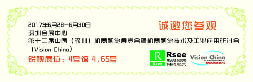 2017年6月28日-6月30日,第十二屆中國(深圳)機器視覺展覽會暨機器視覺技術及工業(yè)應用研討會將在深圳會展中心4號館開幕。銳視光電將應邀出席此屆展會,位于4號館4.65展位。